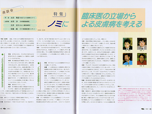 ▲(平成10年)MVM Journal of Modern Veterinary Medicine 1998年3月号の座談会記事の写真