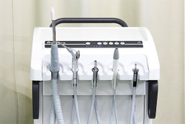 ワゴン本体に給水と吸引がセットされたオールインワンタイプの、高性能ユニットです。特に獣医科用ユニットでは珍しいエアータービンを組み込んでおり、歯内治療にも十分対応できるモデルです。マイクロモーターももちろんついていますが、切削に関しては、タービンを使用することが多いと思われます。