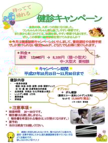 今月は健康診断キャンペーンといたしまして、普段避妊や去勢手術でしか受けられない限定Dockが、どなたでもお得に受けられます。