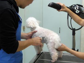 最後にドライヤーのやり方ですが、今回のシャンプー教室ではペット用の業務用ドライヤーを使いましたが、ご家庭では家庭用ハンドドライヤーを使われる方がほとんどだと思われます。