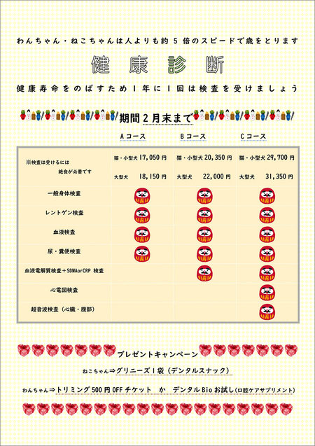 春の健康診断キャンペーンを受けられた方に、以下のプレゼントをお渡ししております。