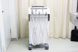 ワゴン本体に給水と吸引がセットされたオールインワンタイプの、高性能ユニットです。特に獣医科用ユニットでは珍しいエアータービンを組み込んでおり、歯内治療にも十分対応できるモデルです。マイクロモーターももちろんついていますが、切削に関しては、タービンを使用することが多いと思われます。