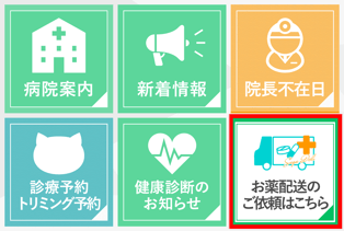 『お薬配送のご依頼はこちら』と書かれているメニューが「すぐデリ」のメニューです。