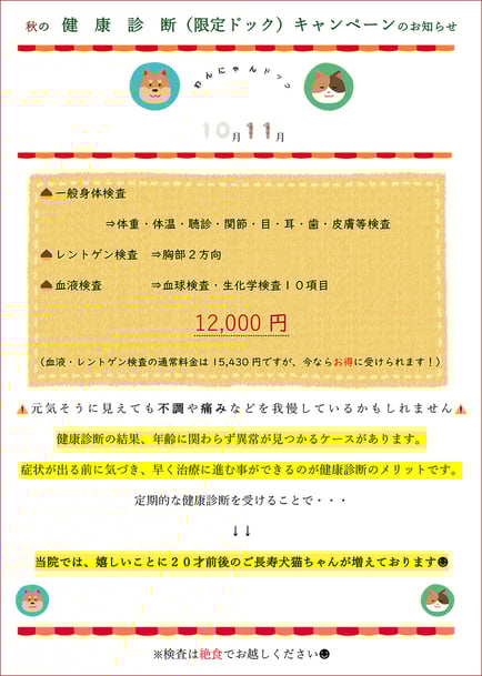 通常 15,430円 → 12,000円(猫・小型犬のみ)